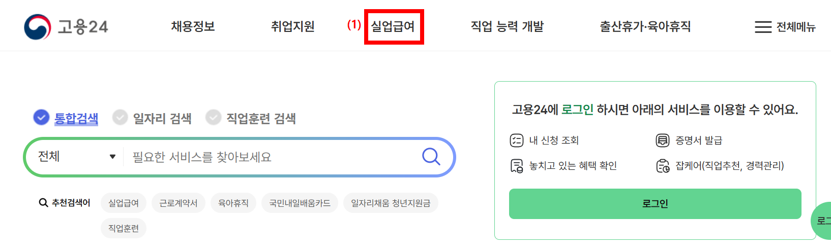 - 고용24 홈페이지 접속.