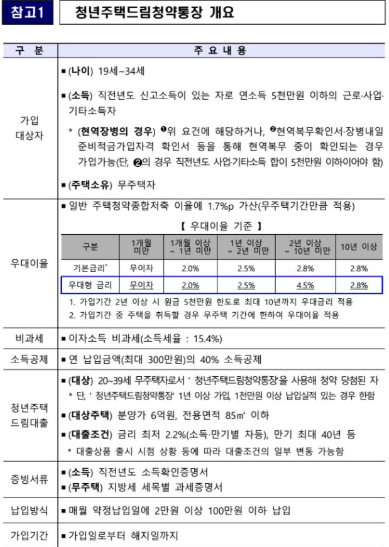 청년 주택드림 청약통장 가입조건
