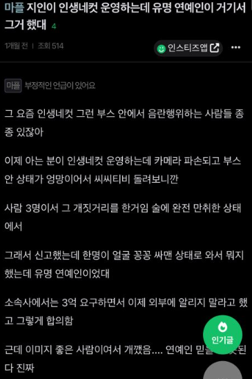 최근 온라인 커뮤니티와 SNS를 중심으로 고경표가 부산의 한 '인생네컷' 사진 부스에서 부적절한 사진을 촬영했다는 루머가 퍼졌습니다. 이에 대해 고경표는 자신의 인스타그램에 직접 '인생네컷' 사진을 공개하며 루머를 일축했습니다. 사진 속 그는 밝은 표정으로 브이(V)와 손하트 포즈를 취하고 있습니다. 또한, 그는 "걱정하지 마세요. 난 그렇게 미치지 않았어요"라는 메시지를 남기며 루머에 대한 강한 부정의사를 표현했습니다.