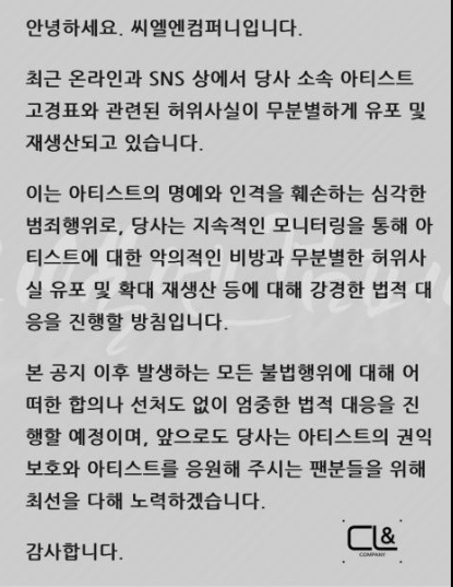 소속사 공식 입장