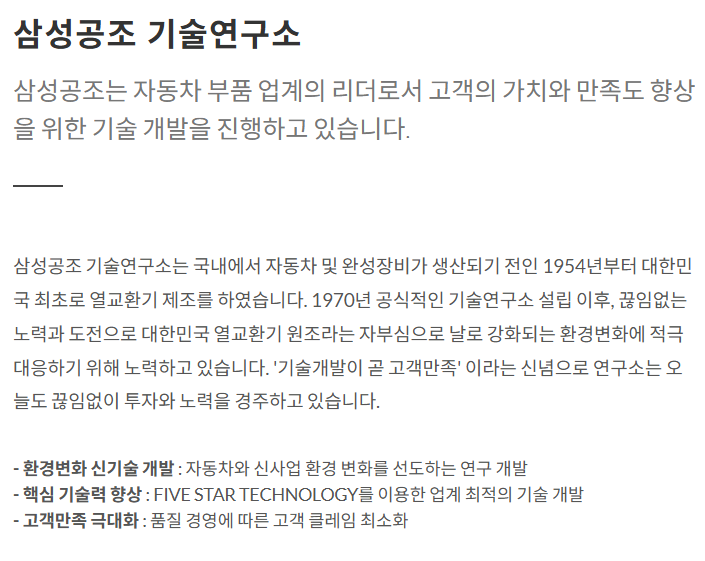 - 삼성공조는 자동차 부품 사업에서 안정적인 수익을 창출하고 있으며, 이는 기업의 재무 안정성을 높이는 요인으로 작용합니다.