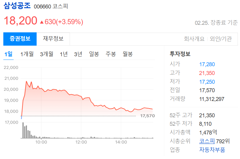 - 2025년 2월 24일에는 장중 상한가를 기록하였습니다.