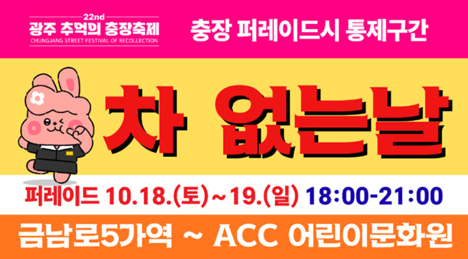 충장축제 기간에는 주 무대인 금남로와 충장로 일대가 전면 '차 없는 거리'로 운영됩니다.