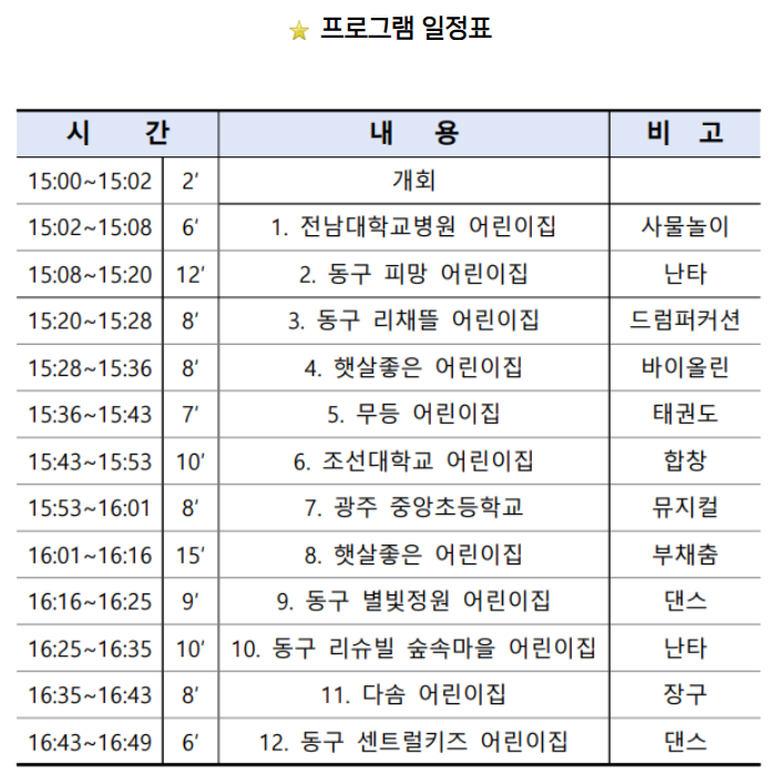| 평일 (중반) | 아시아 컬쳐쇼, 청소년 버스킹 | 한·일 합동 아이돌, 청소년 공연팀 |